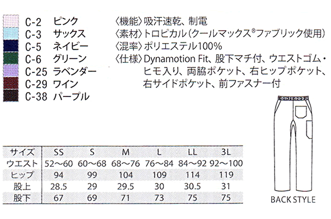 ■商品名:スクラブパンツ(兼用)■サイズ展開:SS〜3L■カラー展開:ピンク、サックス、ネイビー、グリーン、コーラルピンク、ラベンダー、ワイン、パープル■素材:トロピカル(クールマックス(R) ファブリック使用)■混率:ポリエステル100%■仕様:Dynamotion Fit、股下マチ付、ウエストゴム・ヒモ入り、両脇ポケット、右ヒップポケット、右サイドポケット、前ファスナー付■機能:吸汗速乾、制電Size Information SS:ウエスト 52~60cm/ヒップ 94cm/股上 28.5cm/股下 67cm S:ウエスト 60~68cm/ヒップ 99cm/股上 29cm/股下 69cm M:ウエスト 68~76cm/ヒップ 104cm/股上 29.5cm/股下 71cm L:ウエスト 76~84cm/ヒップ 109cm/股上 30cm/股下 73cm LL:ウエスト 84~92cm/ヒップ 114cm/股上 30.5cm/股下 75cm 3L:ウエスト 92~100cm/ヒップ 119cm/股上 31cm/股下 75cmCOLOR VARIATIONFUNCTIONDETAIL&SIZESIZE INFORMATION unite×MIZUNO 関連アイテムはこちら unite MIZUNO クールマックスオールシーズンスクラブ MZ-0051 unite MIZUNO クールマックスオールシーズンスクラブパンツ MZ-0052