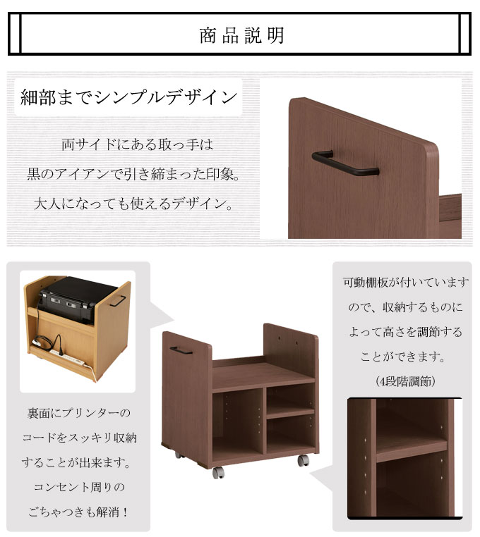 商品説明 カラー オークライト(WG37) オークブラウン(WG38) サイズ(cm) W42×D50×H52 仕 様 本体 パーティクルボード転写・UV塗装 ○可動棚1枚付(4段階調節) ○キャスター付き 送 料 -**-送料無料-**-ただし、北海道、沖縄、離島は別途料金がかかります。